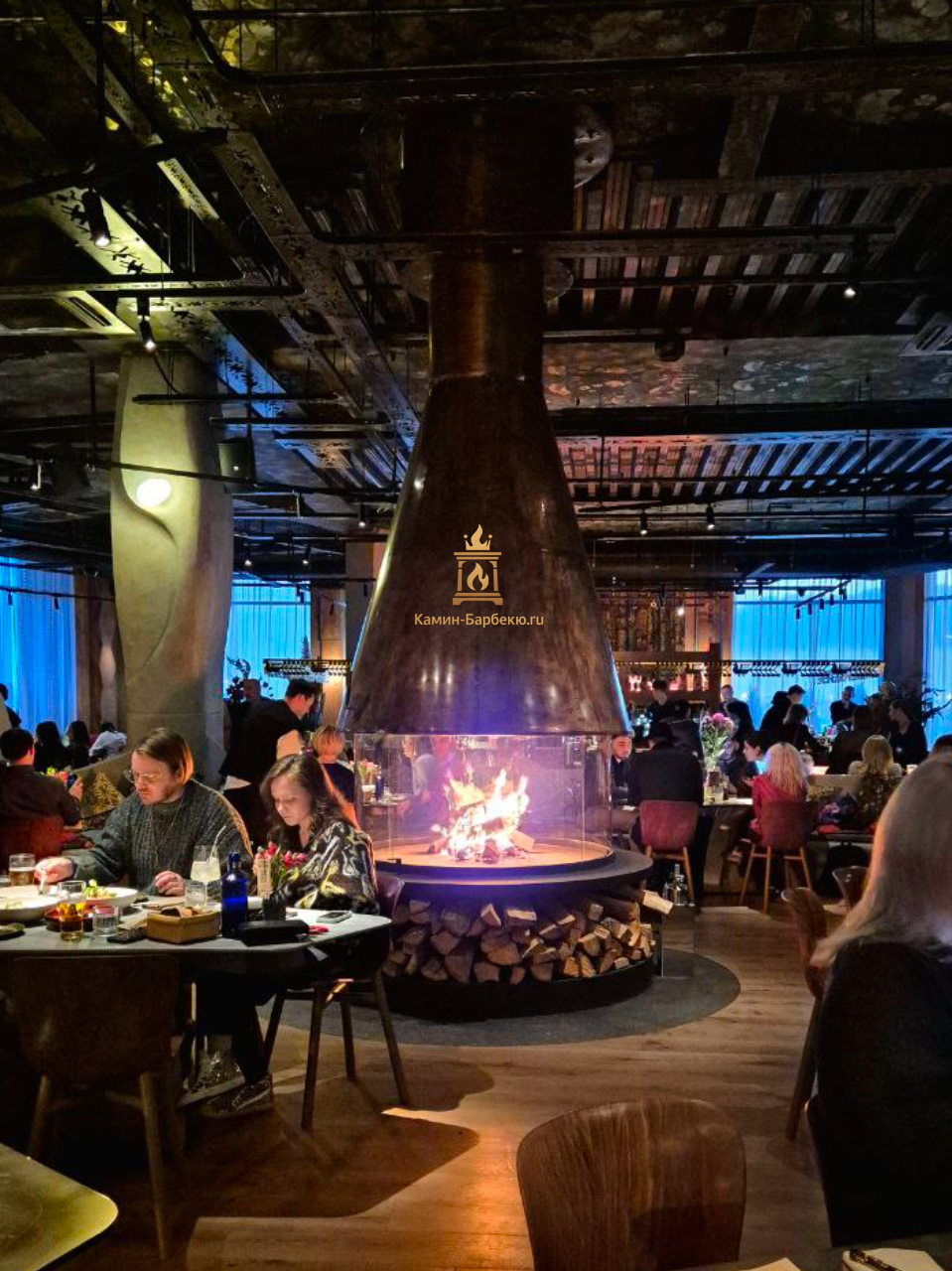 Камин островной из меди для ресторана "Горыныч"