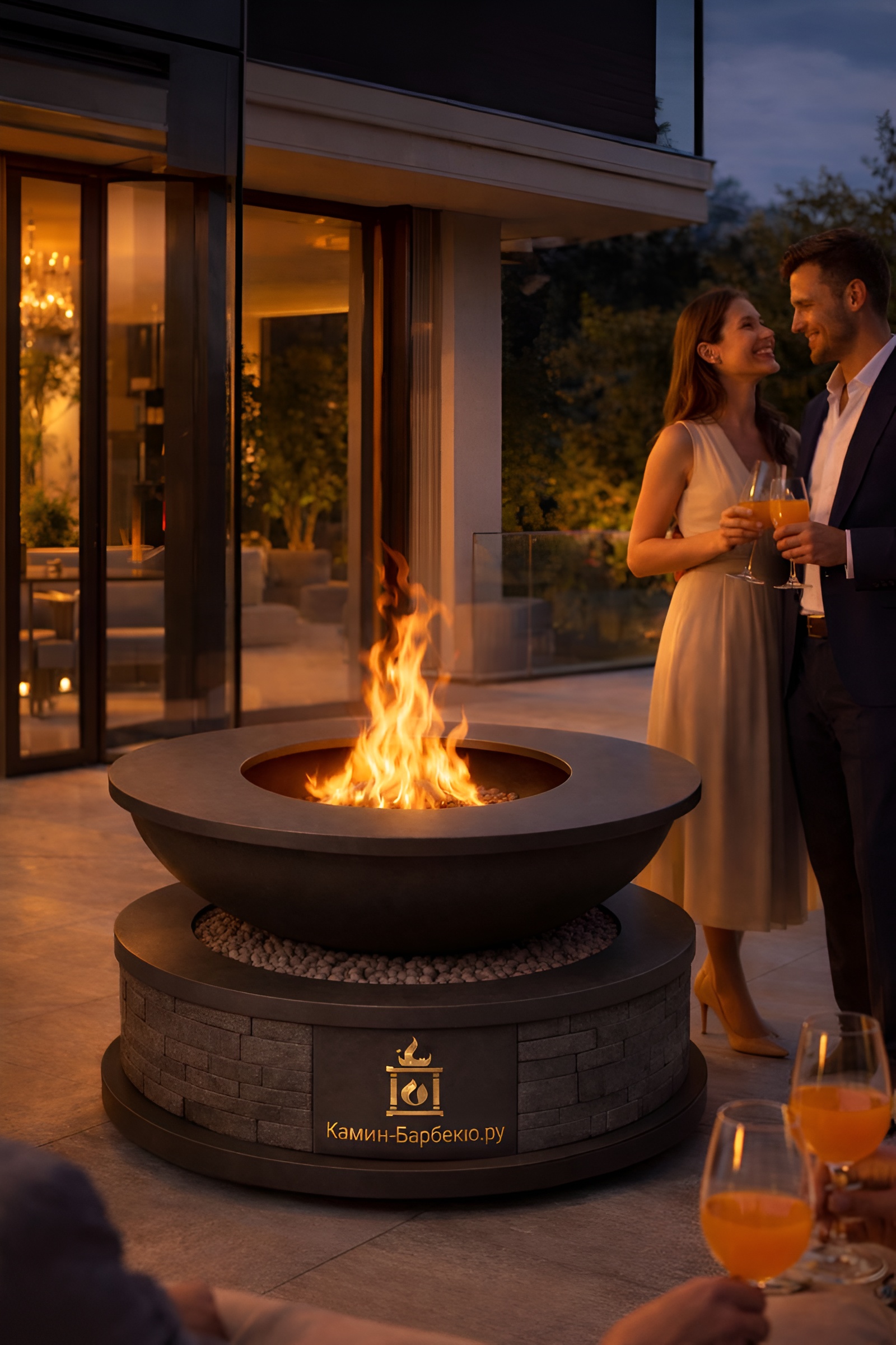 Живой огонь усиливает атмосферу природного отдыха и делает территорию более привлекательной для гостей.