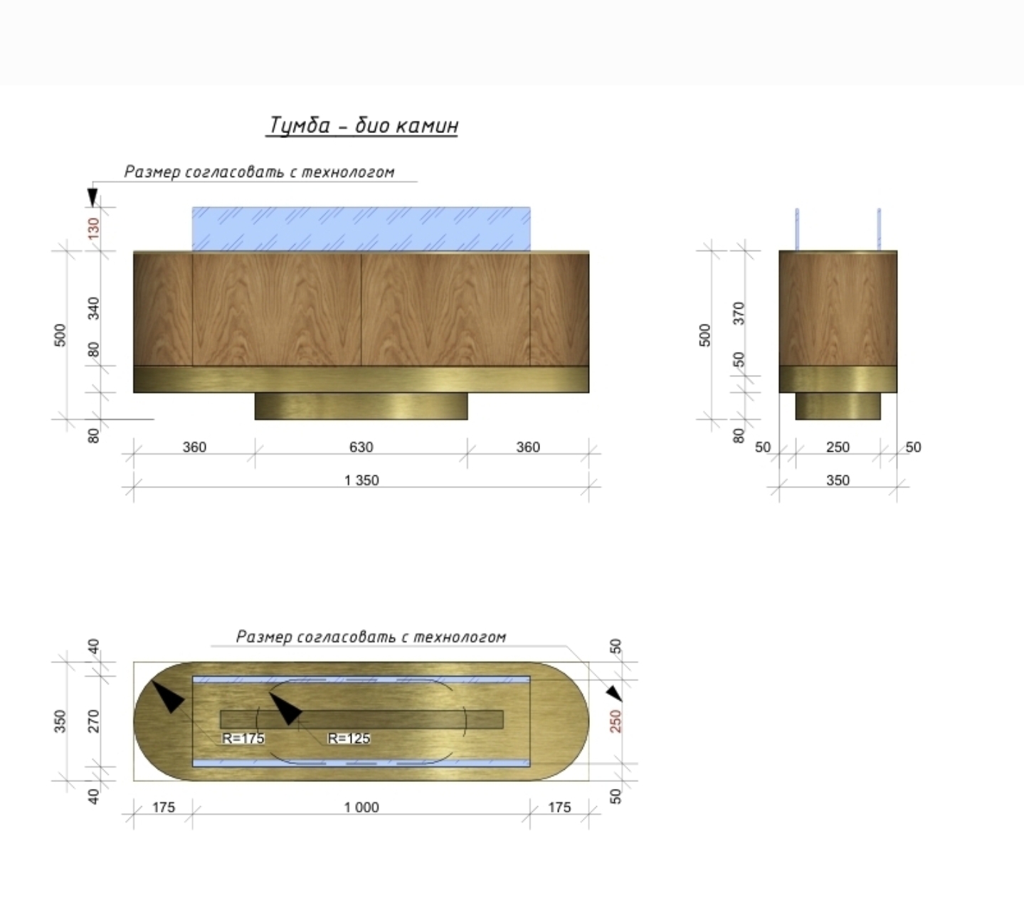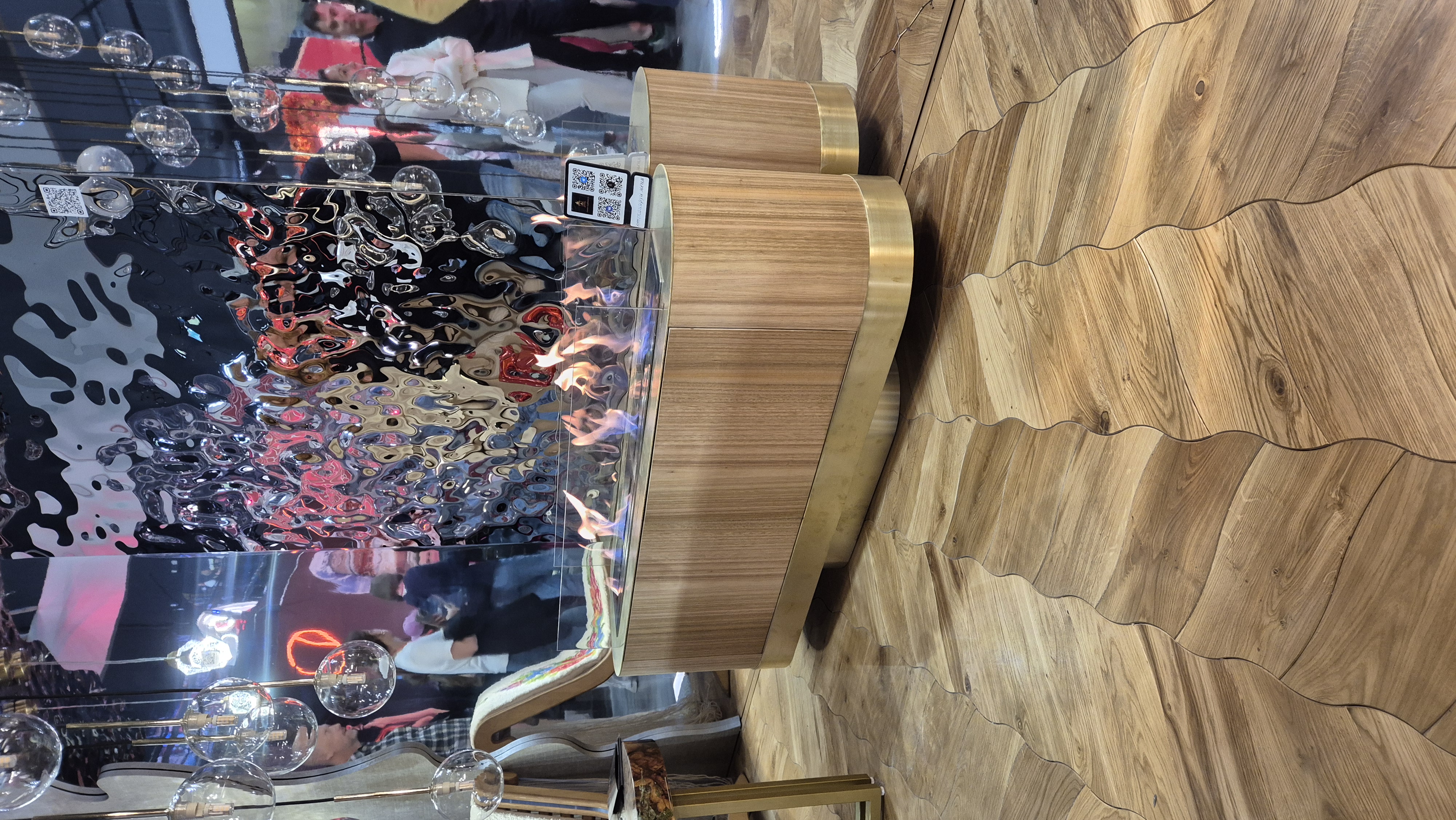 Камин-тумба из латуни с живым огнем.